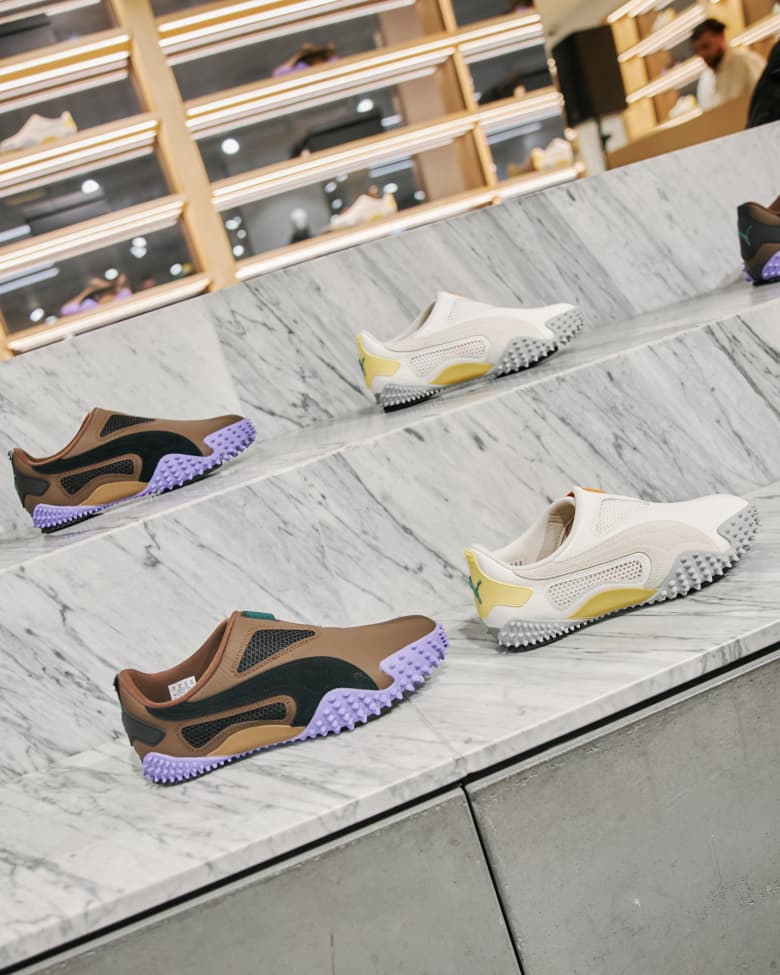 Following the workshops, END. opened its doors for a friends & family launch night. Curated by George, the evening saw attendees get the opportunity to get hands on with the Inside Tag UR Mostro and take a peek behind the curtain with an expansive wall display chronicling George’s creative process behind both the Warm White & Light Straw and the Haute Coffee & Puma Black colourways.