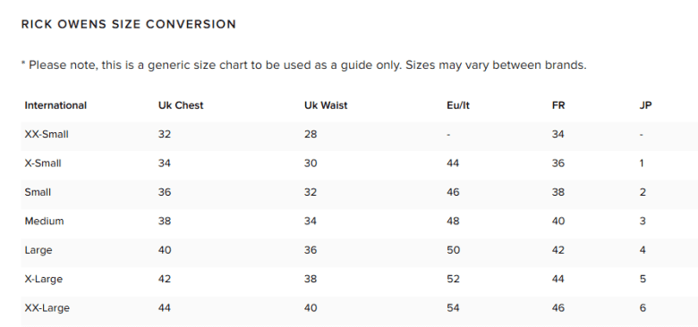 Rick Owens’ unconventional silhouettes make checking measurements essential. With oversized, elongated and sculptural cuts, the standard men's sizing rules don’t apply here.
